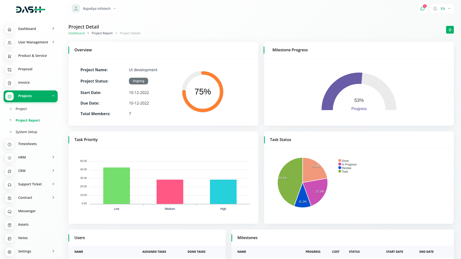 Attach cost and summary to milestones and change the status through the drop-down menu. Get a tab on recent activities of a project and also a graph about progress. Along with that, you can check your tasks’ details under project details with the help of the Gantt Chart.